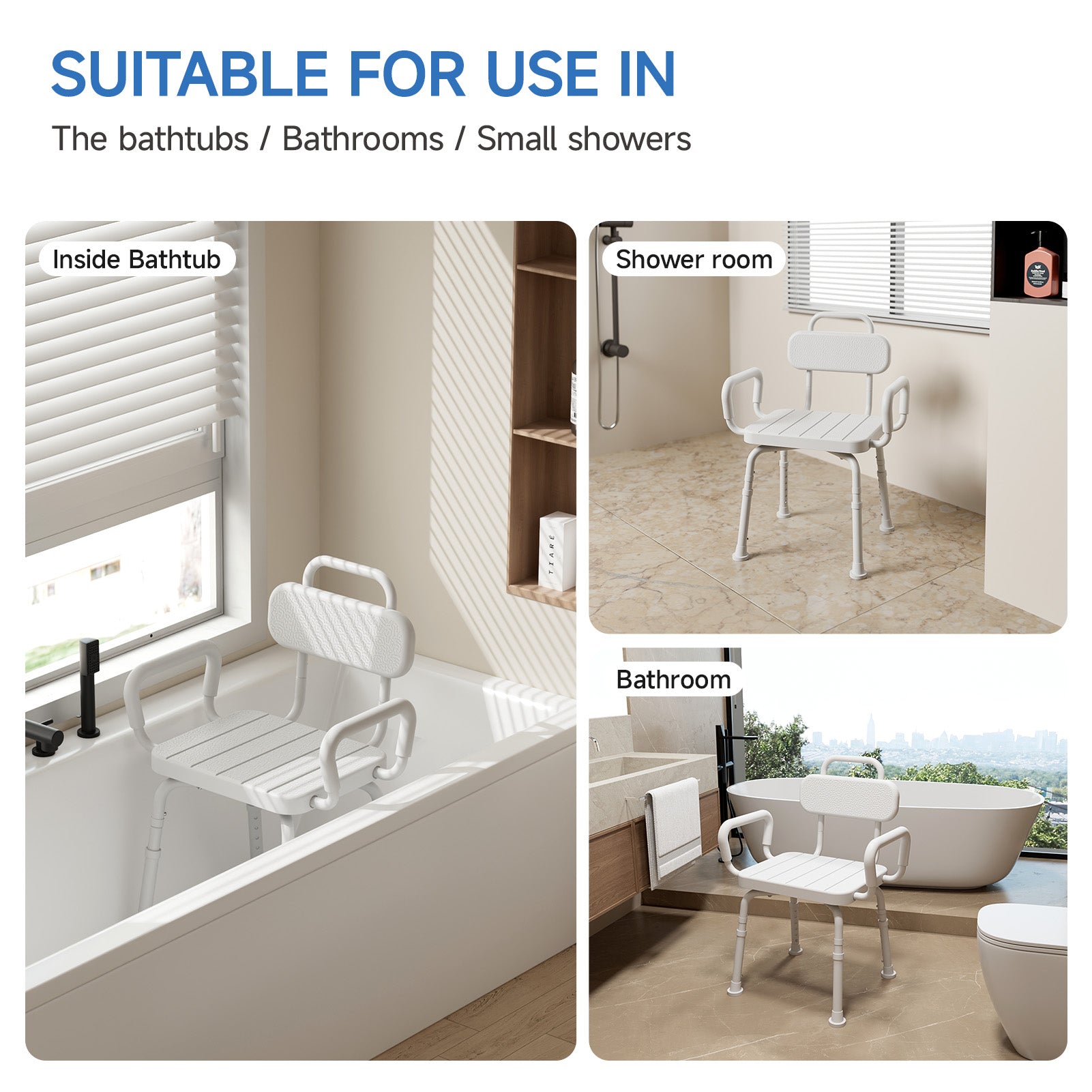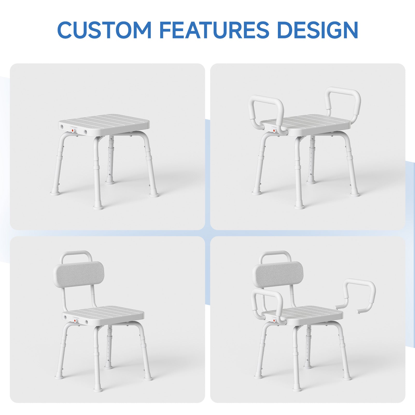 -Engineered with a reinforced heavy-duty aluminum frame, this shower chair boasts an impressive 350 lbs weight capacity. It offers unparalleled stability and support, ensuring peace of mind for users of all sizes.