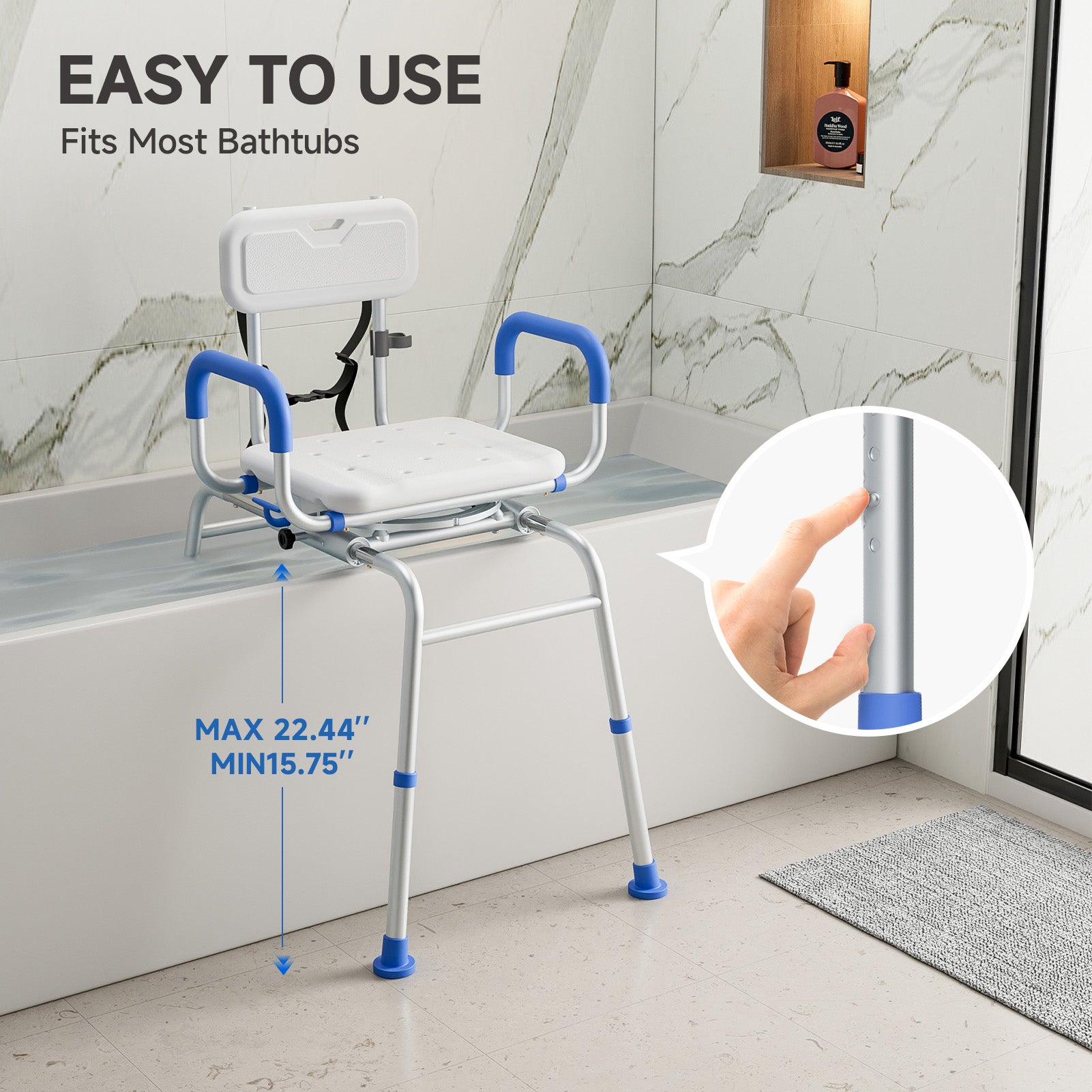 - Tool-Free Height Adjustment :Height adjustment range: 16"-22". Features one-handed lever operation requiring no tools, instantly adapting to deep Jacuzzi tubs or low bathtubs. Seat weight capacity: 350 lbs.