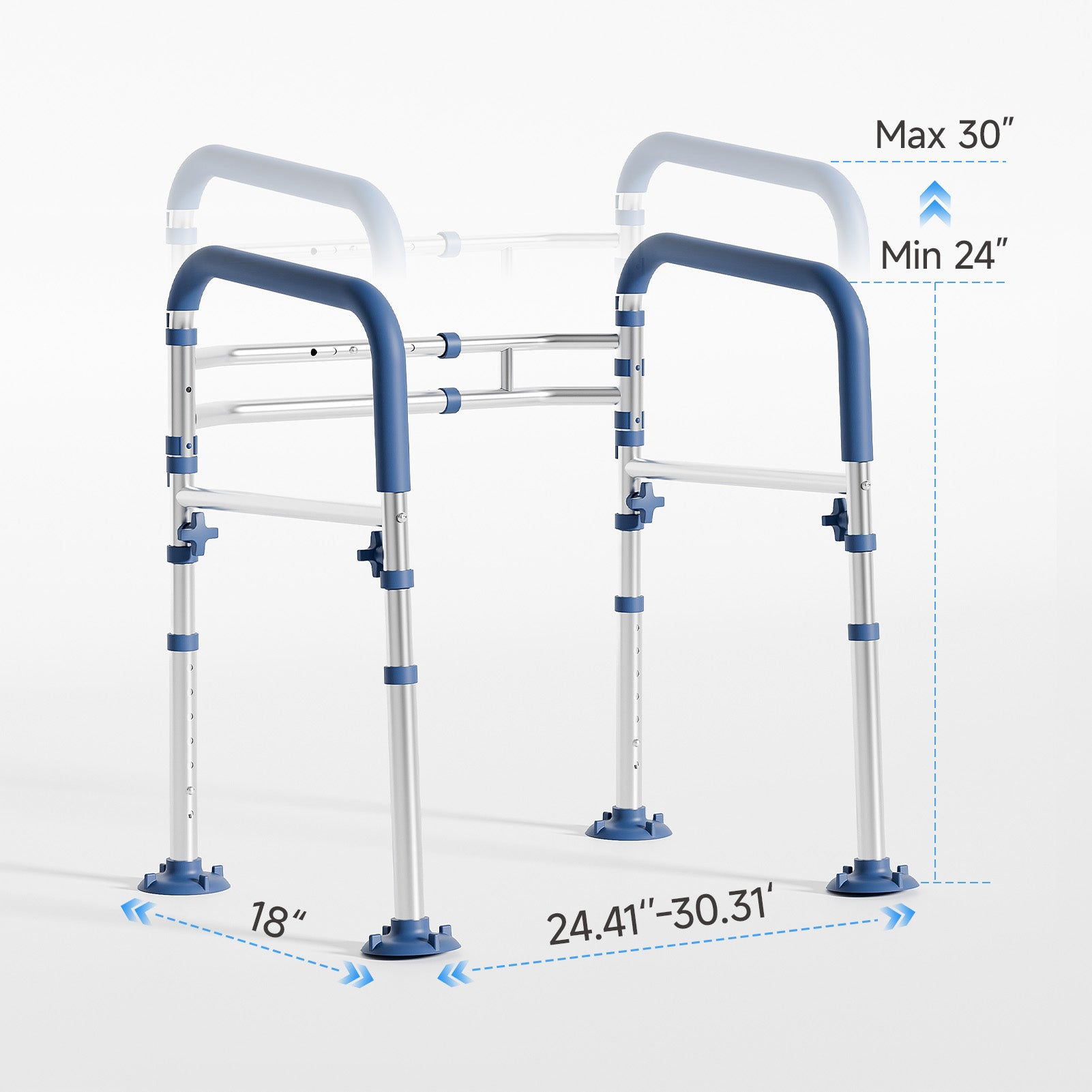 - Engineered for safety: Toilet Rail with 4 upgraded wide-base suction pads, Each pad is crafted from high-elasticity silicone that conforms seamlessly to tile surfaces, instantly adhering without slipping. The extra-large contact area delivers unmatched grip strength, eliminating risks of wobbling or sliding common with traditional supports. Even in damp environments, it stays firmly anchored and supports up to 350 lbs, providing reliable support for sitting down or standing up with confidence. Note: Suction cup feet only have suction on smooth tile floors; they will not adhere to non-tile floors or when placed over gaps between floor tiles.