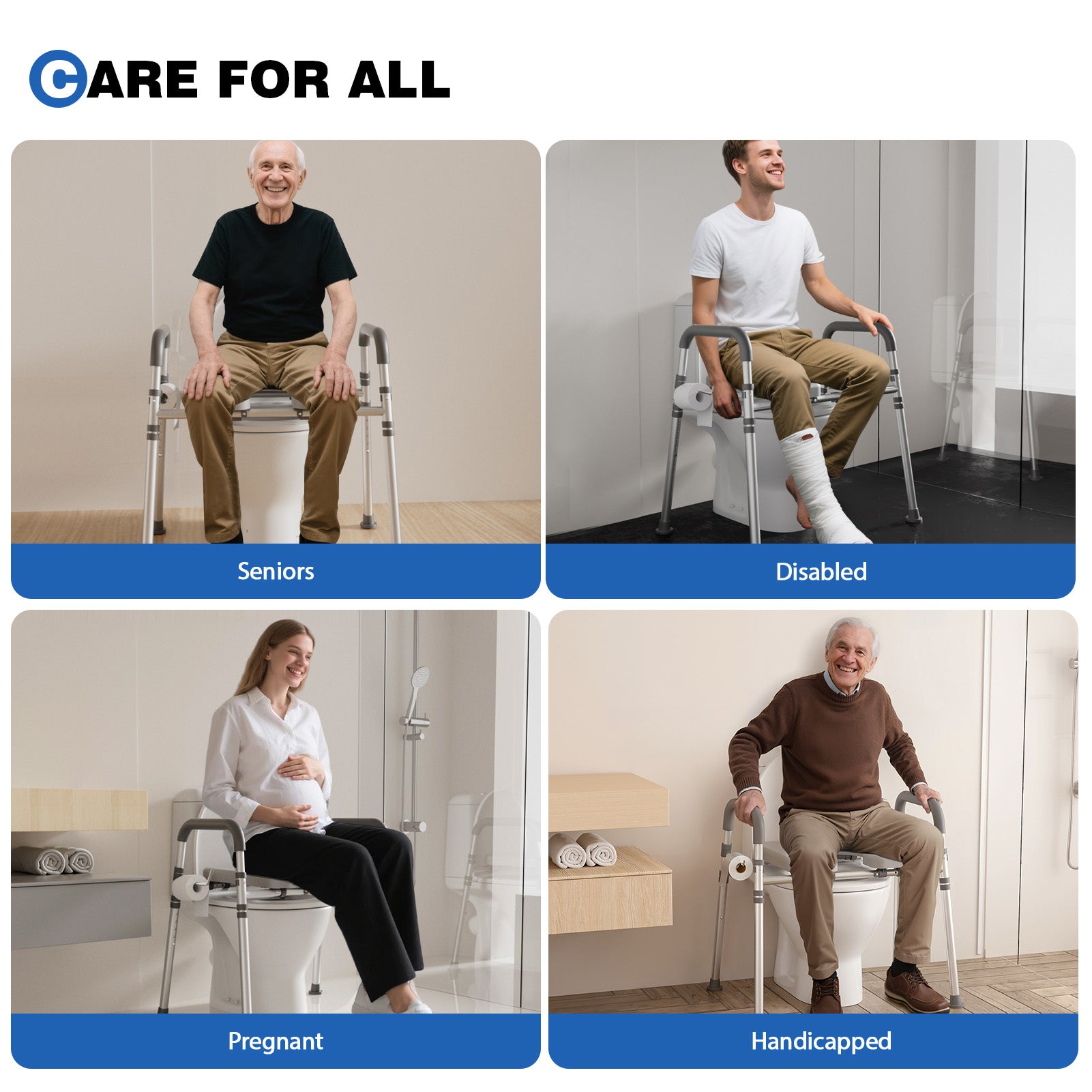 - Triple Adjustable Design : Customize seat height (19.68"-23.62"), handle height (26"-30"), and width (24.31"-30.31") to fit most of standard toilets. Ideal for seniors, post-surgery recovery, obesity, or pregnancy.